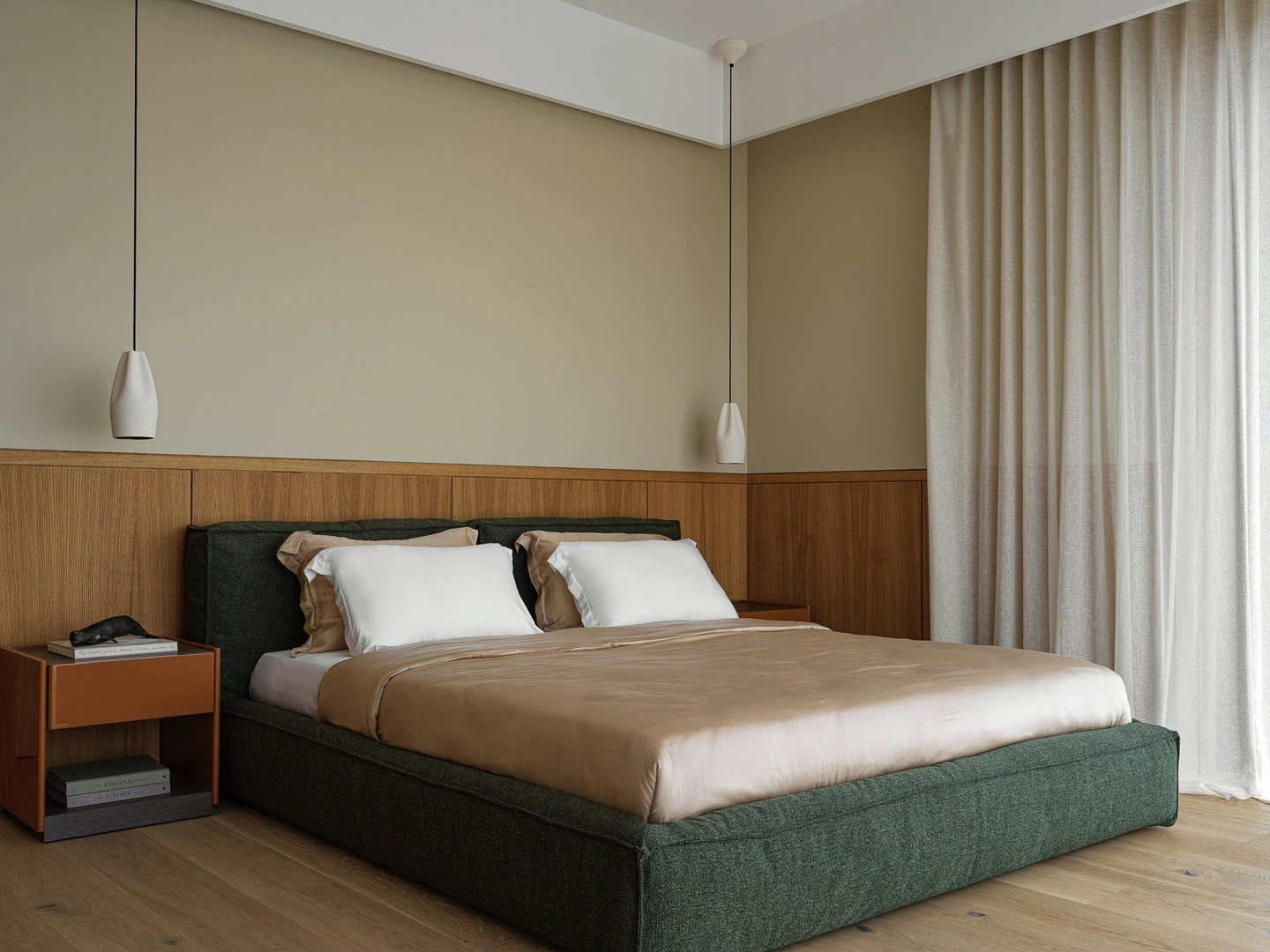 Они расположены в уединенной части дома. Здесь спокойно, даже если в гостиной шумно.В архитектуре учтено направление лучей солнца, поэтому в самые короткие ночи сон будет безмятежным.